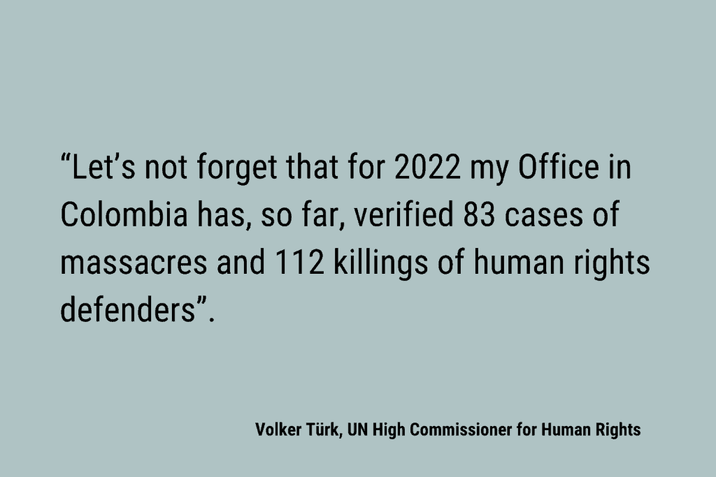 The recent creation of the Ministry of Equality was also applauded by Türk who describe it as a “crucial institution” and a “breakthrough that we hope will implement much-needed policies to end discrimination against women, indigenous peoples, Afro-descendants, peasants and rural communities, young people, LGBTI+, persons with disabilities and others in Colombia”, said Volker Turk