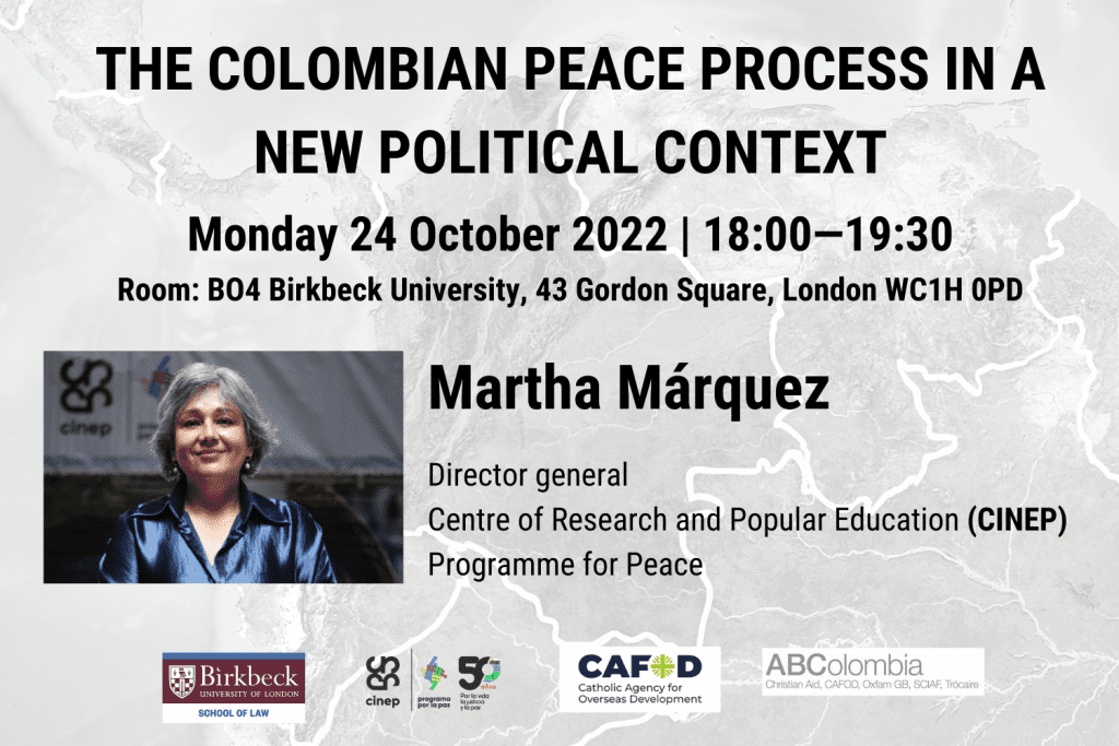 For the first time Colombians elected a left-wing government and a black Vice President. Martha will discuss what “Paz Total” (Total Peace) will mean for Colombia and what opportunities this creates for the full implementation of the Peace Accord, and to discuss what obstacles are likely to be encounter.